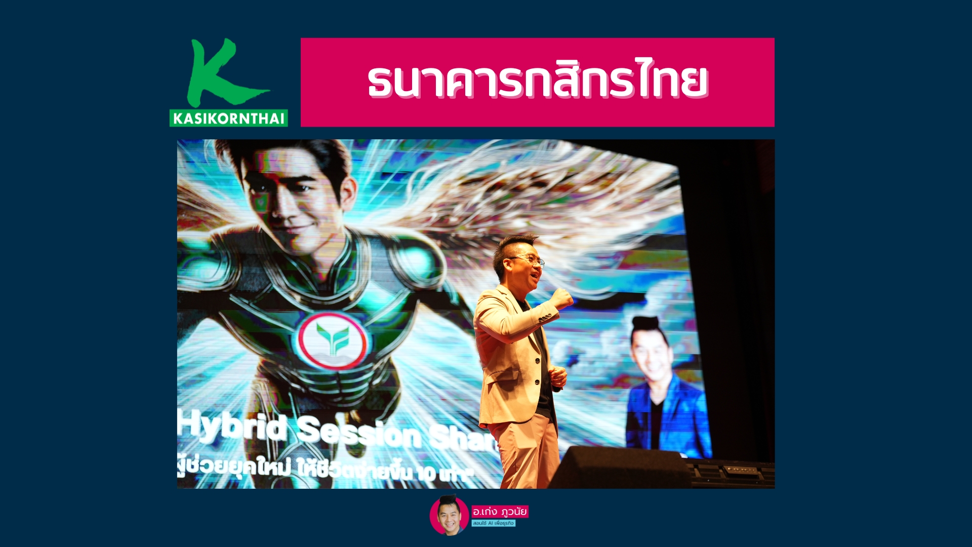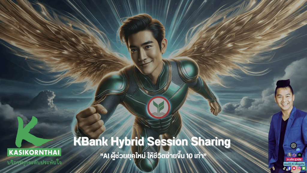 ขอขอบคุณ ธนาคารกสิกรไทย (KBANK) ที่ให้โอกาสผมร่วมแบ่งปันหัวข้อ AI เพื่อการทำงาน — ผู้ช่วยยุคใหม่ที่ทำให้ชีวิตง่ายขึ้น 10 เท่า ในกิจกรรม KBANK Hybrid Session Sharing เพื่อยกระดับประสิทธิภาพการทำงานของทั้งองค์กร